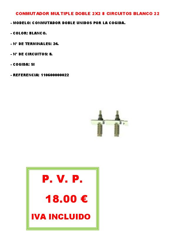 CONMUTADOR MULTIPLE DOBLE 2X2 8 CIRCUITOS BLANCO 22